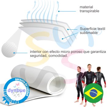 superior e inferior y una espuma de neopreno en su parte central de 2,5 mm de espesor. |