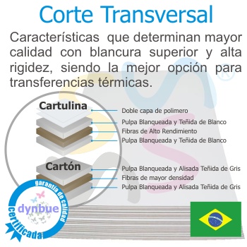 extra blanca pre tratada con polímero sublimable de alto brillo, aptos para impresión a una cara.